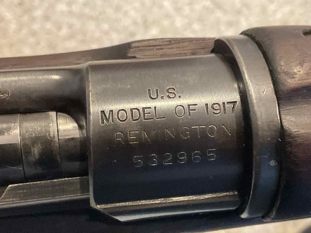 For sale is a REALLY NICE WW1 era USGI Remington United States Rifle Model of 1917 rifle or sometimes called the M1917, P17, or American Enfield. According to the serial number this rifle was manufactured in September of 1918 and has what is quite possibly the original barrel that is a Remington September 1918 dated barrel. I had this rifle completely disassembled by a gunsmith and inspected. It was found to be in great working order and condition. In fact it was found to be almost completely assembled with Remington marked parts. The ONLY parts noted not to be Remington were the buttplate, rear sight slide, lower band and stock. ALL the other parts are matching Remington which leads one to believe it is VERY original. If you are needing a Remington 1917 rile in your collection then this is an excellent specimen.